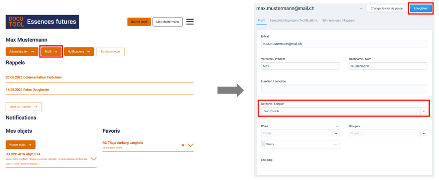 Pour que le formulaire s'affiche ensuite en français, sélectionnez d'abord le français comme langue dans les paramètres de votre profil.