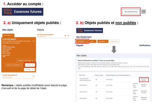Si vous souhaitez malgré tout supprimer définitivement un objet, merci de contacter les administrateurs (info@essencesfutures.ch).